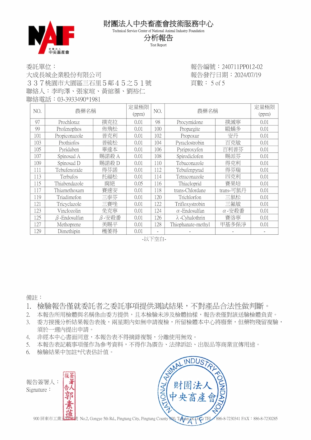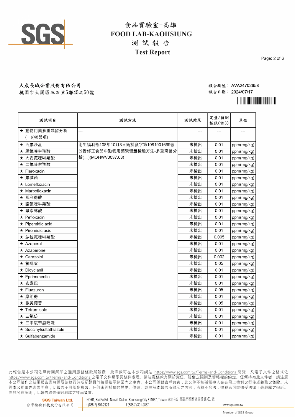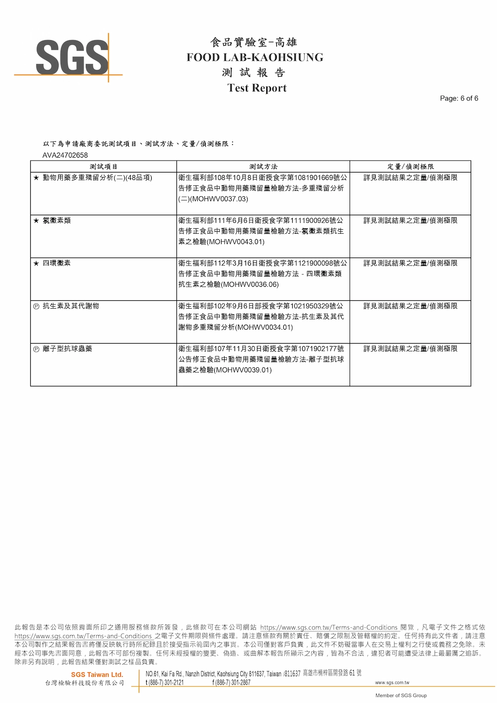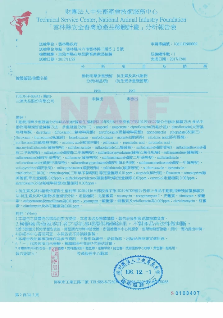 檢驗內容:SGS家禽藥物殘留檢驗報告