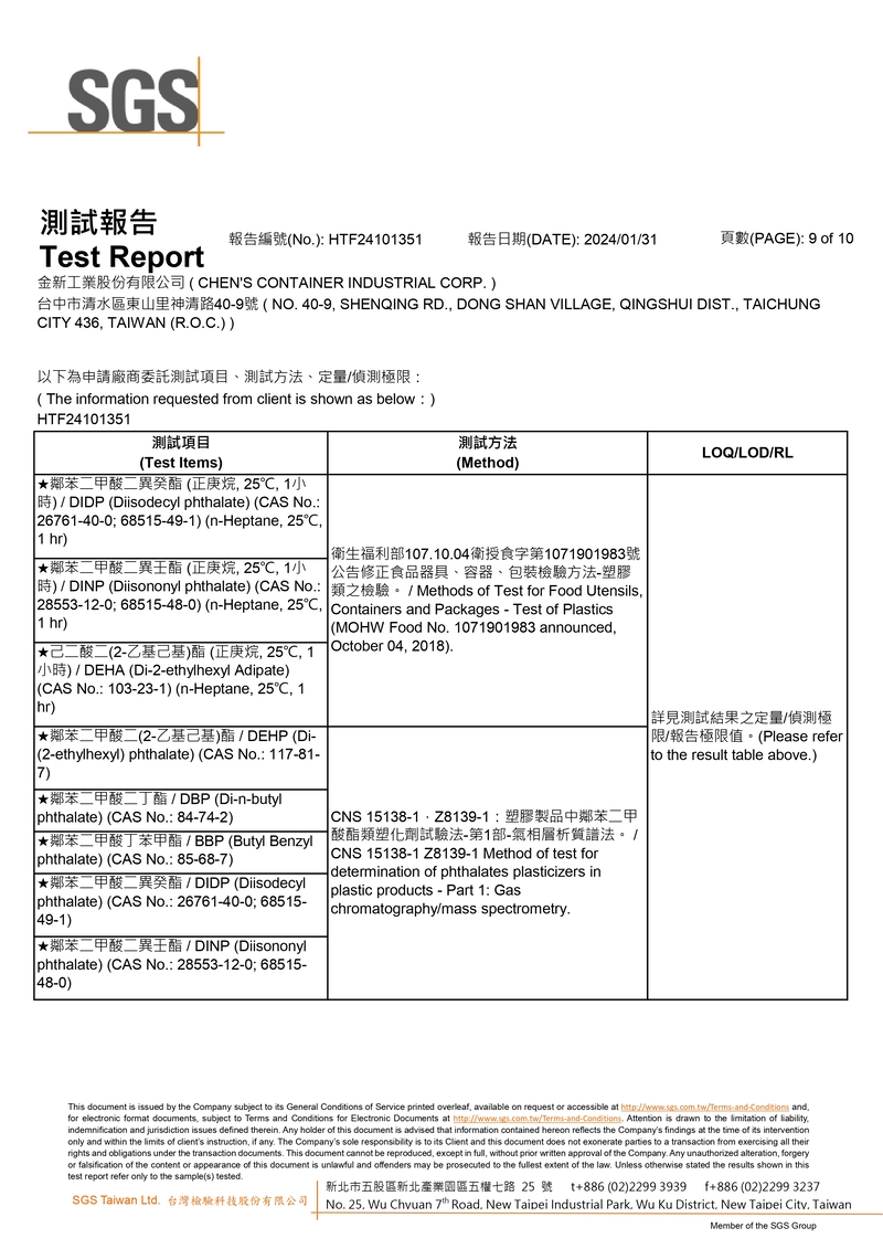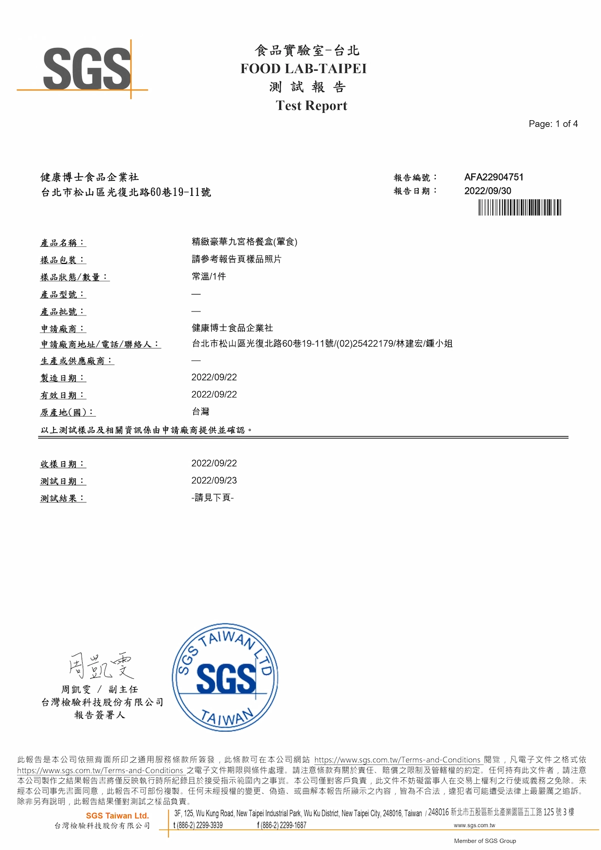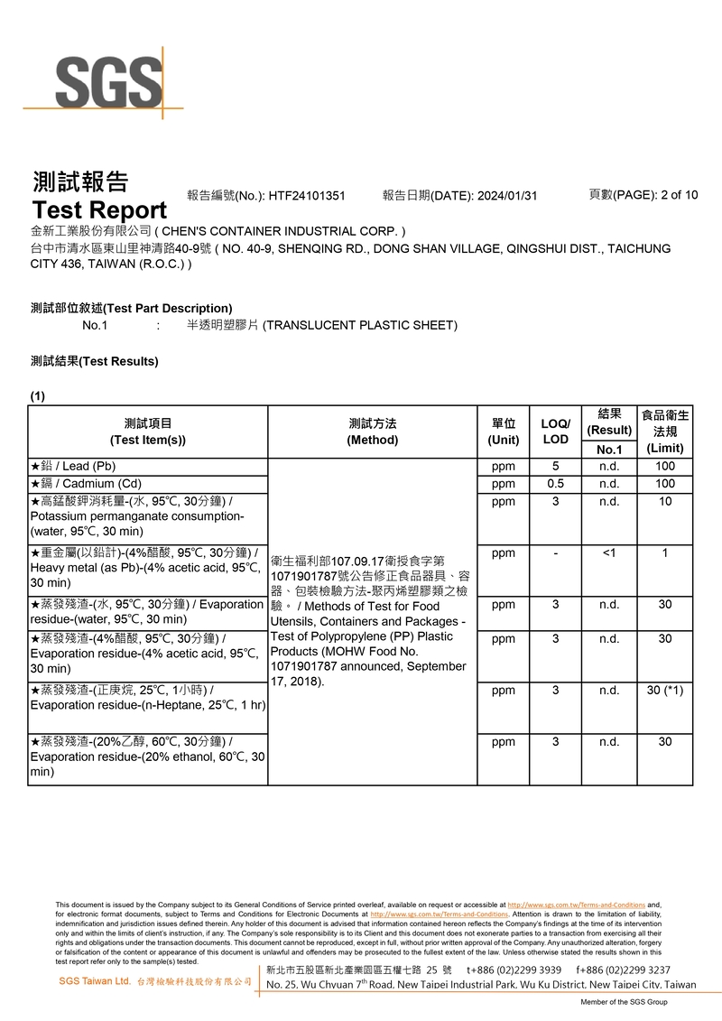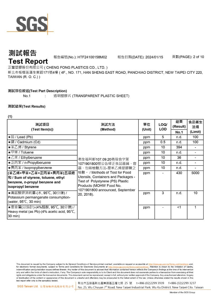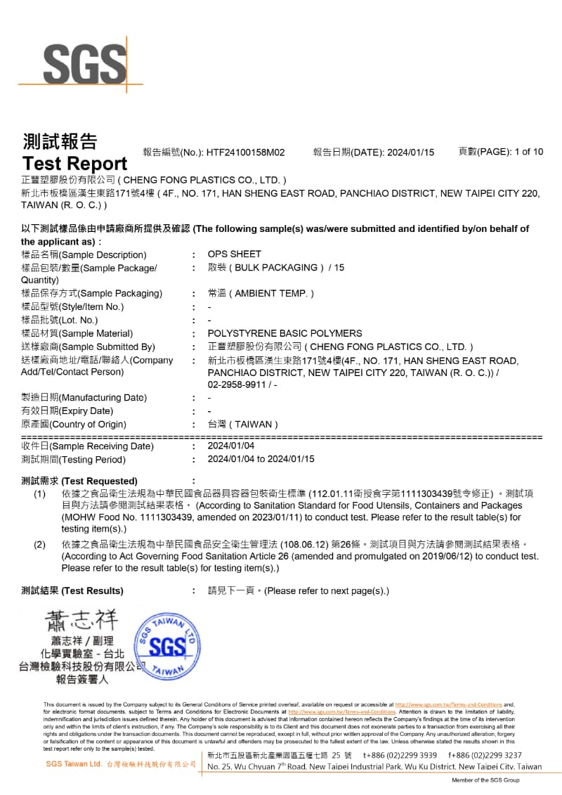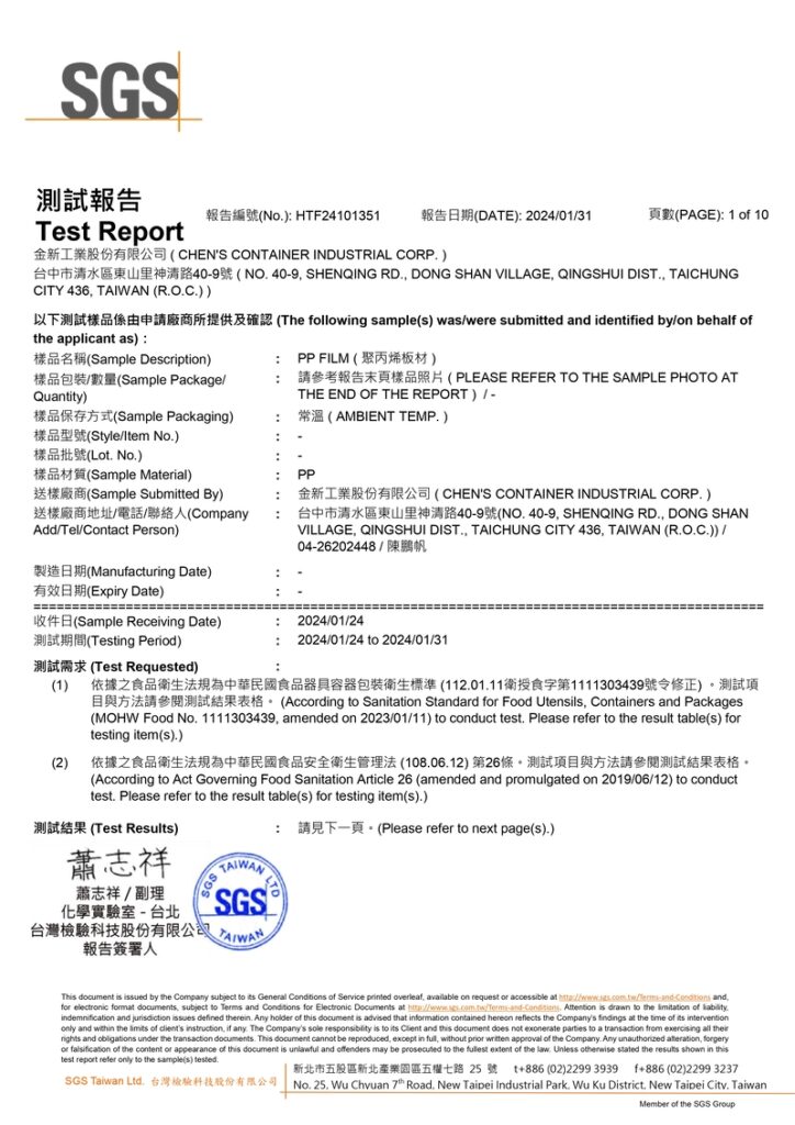 SGS檢驗報告