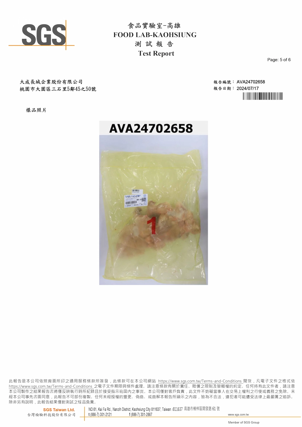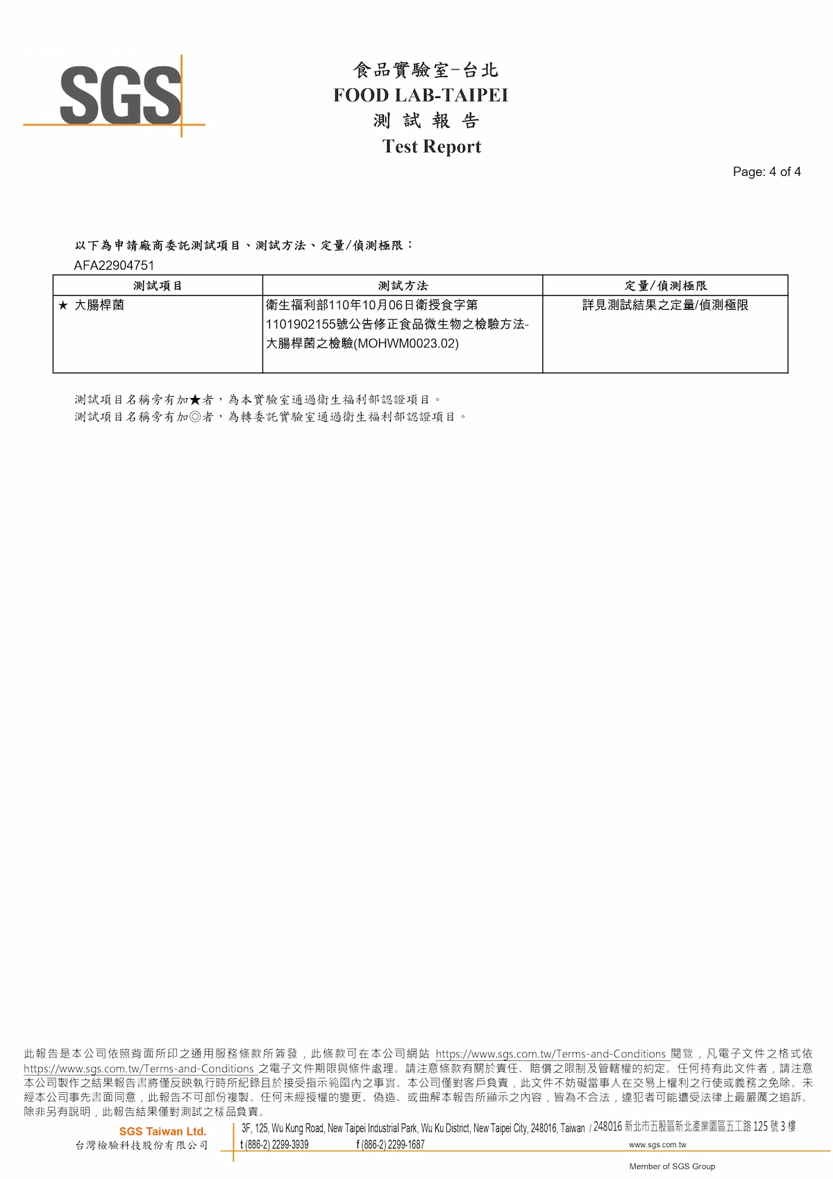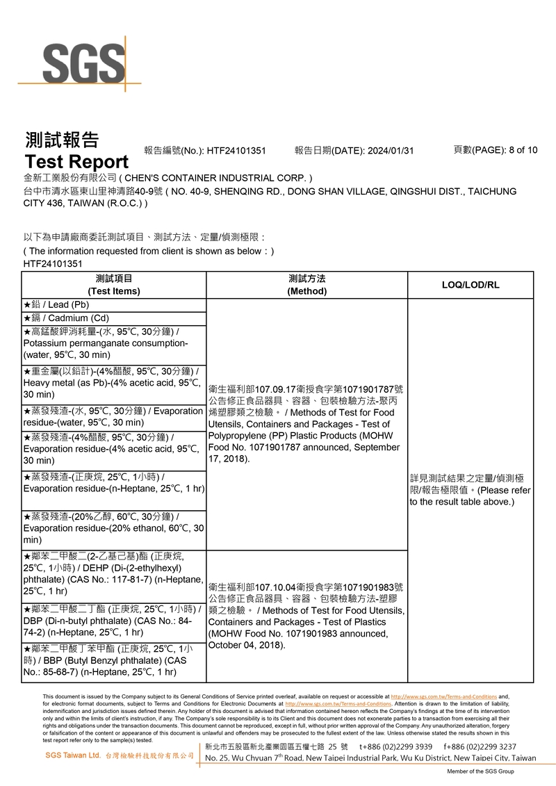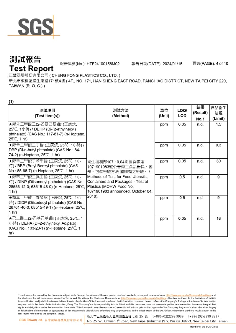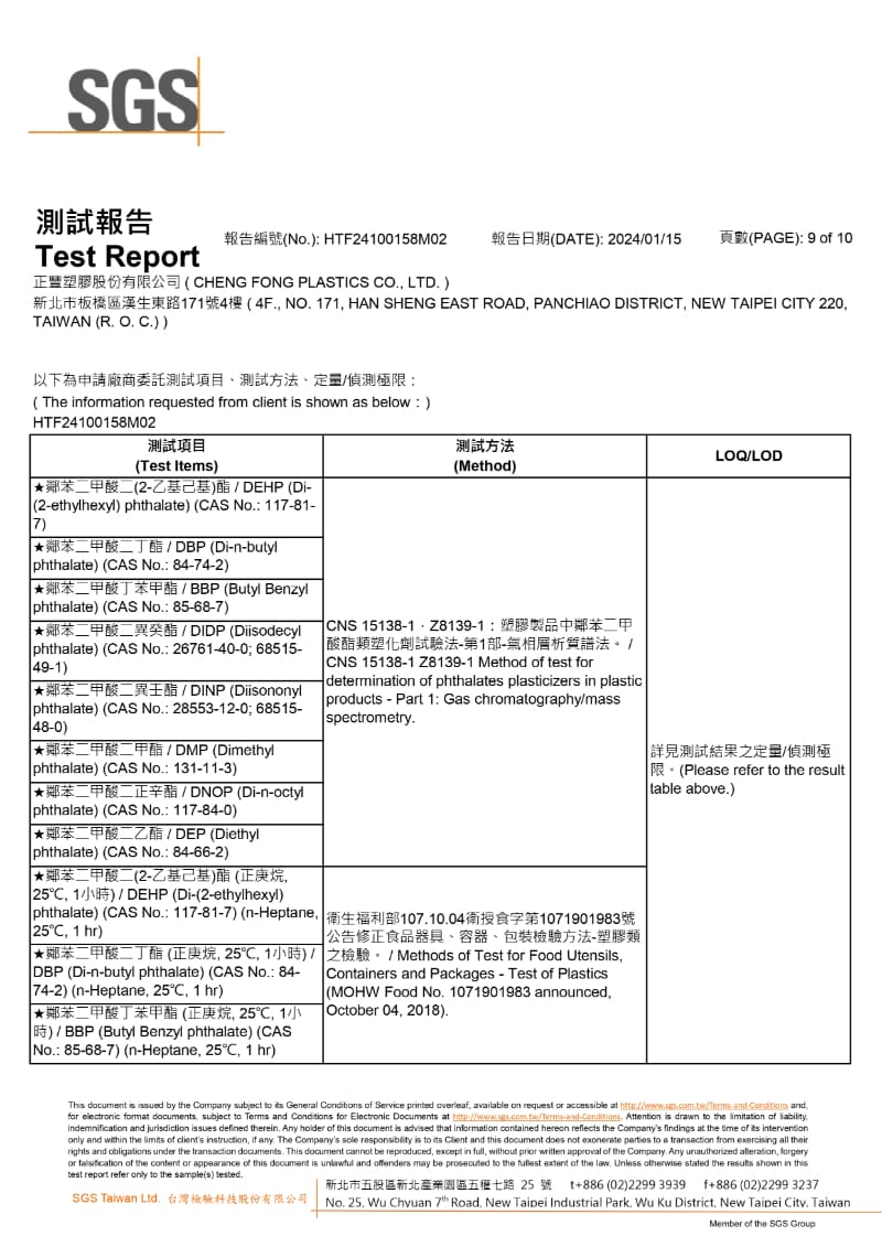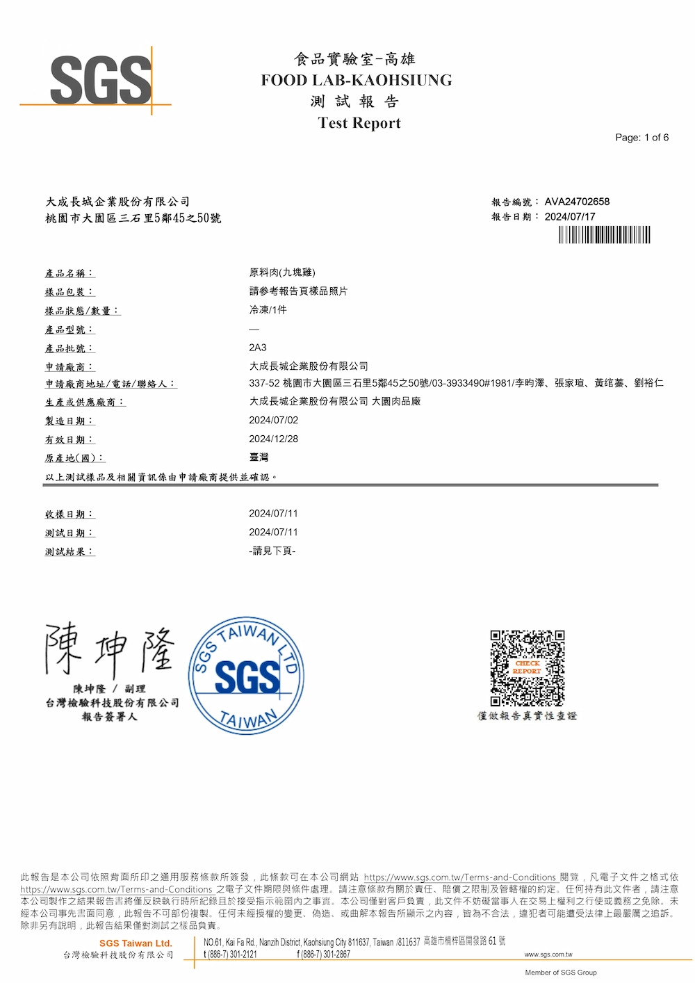 SGS檢驗報告