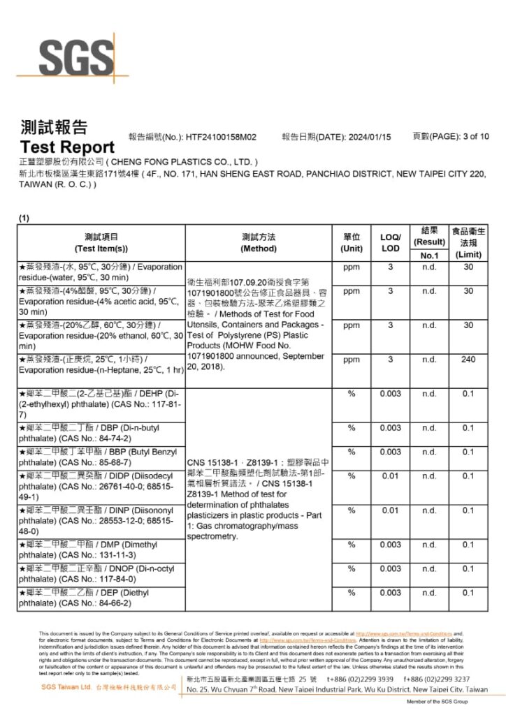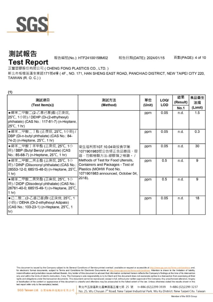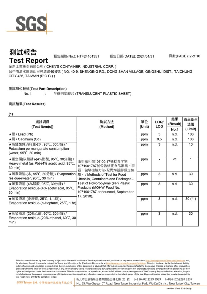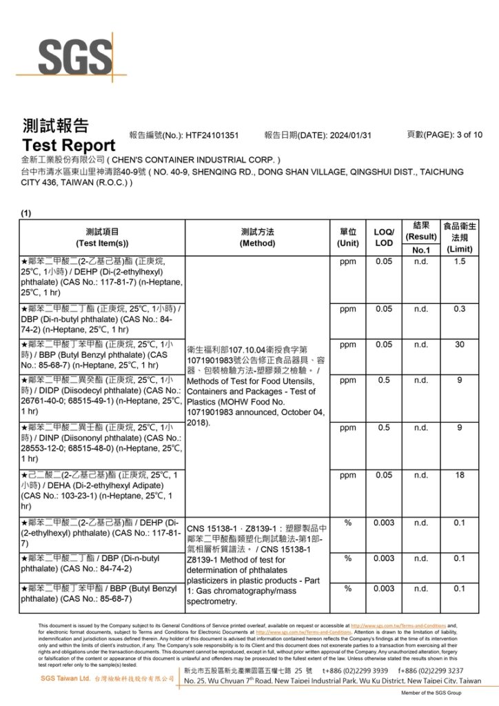檢驗單位:SGS台北食品實驗室