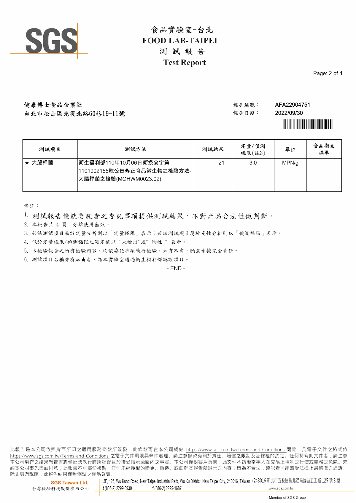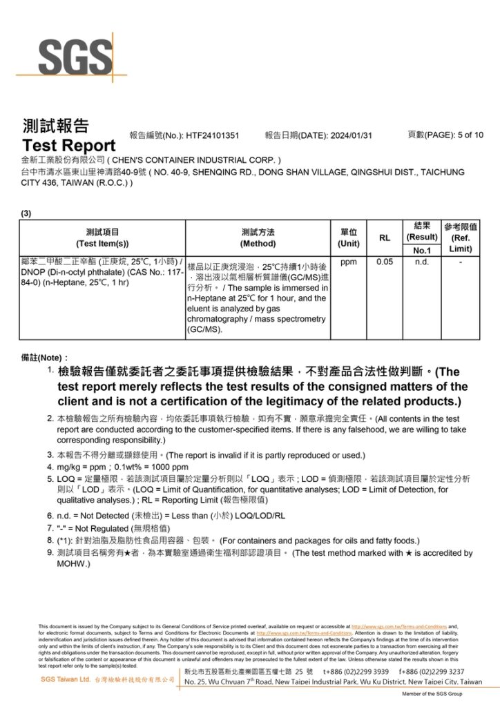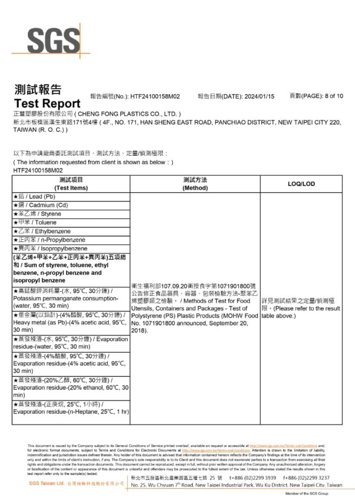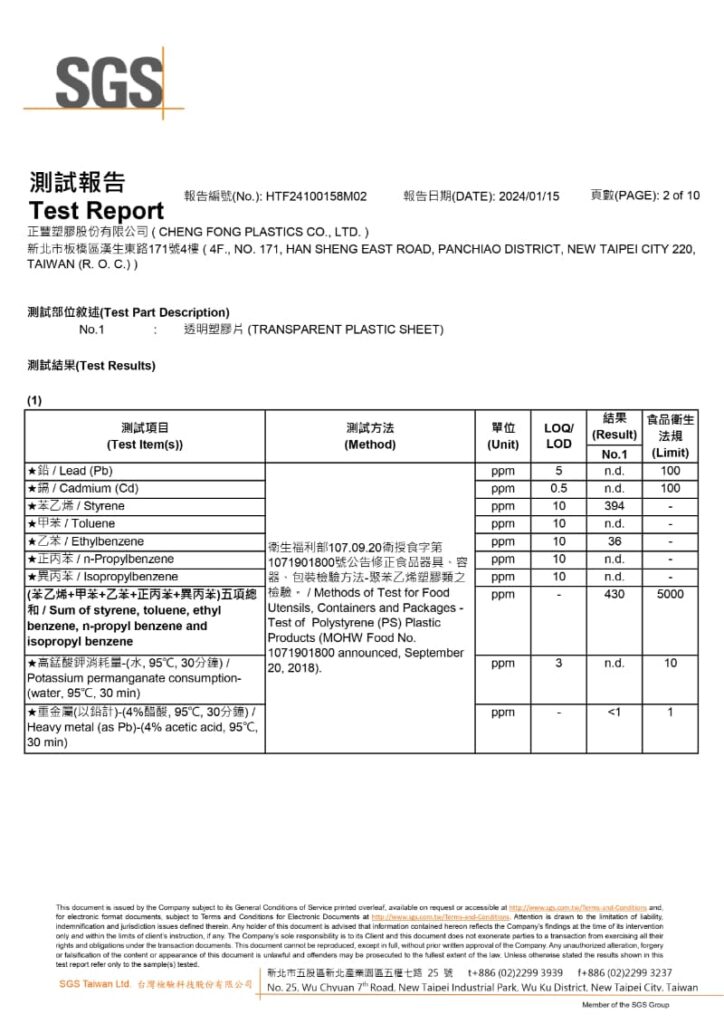 檢驗單位:SGS台北食品實驗室