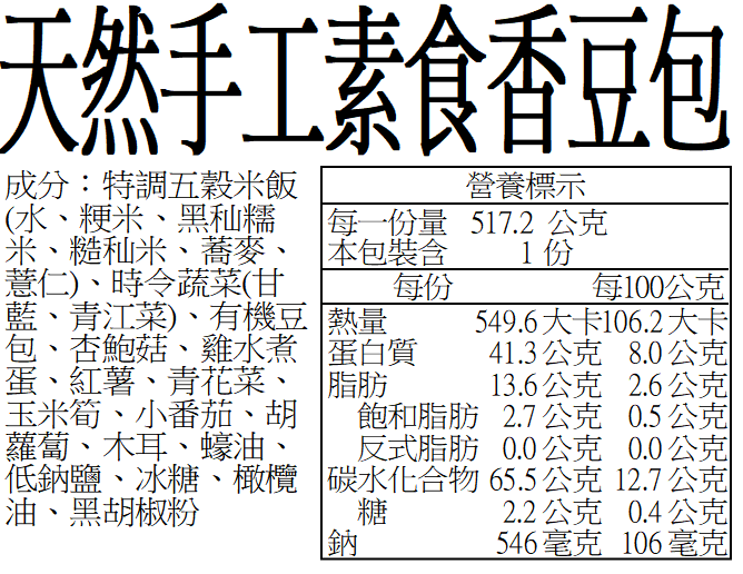 ‧ 豆類製品採用非基改黃豆。