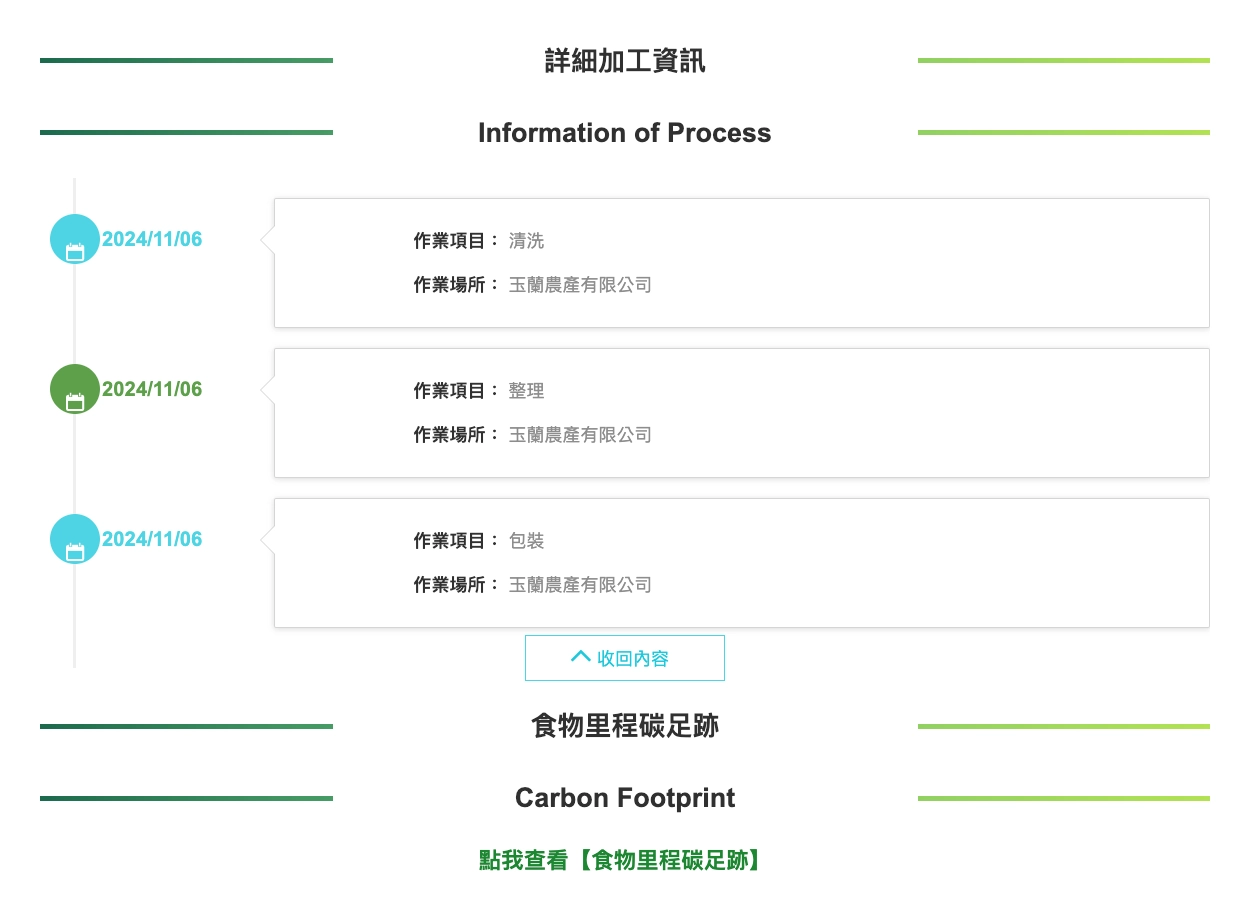 點選按鈕前往「產銷履歷農產品資訊網」,輸入追朔號碼可查看詳細資訊。